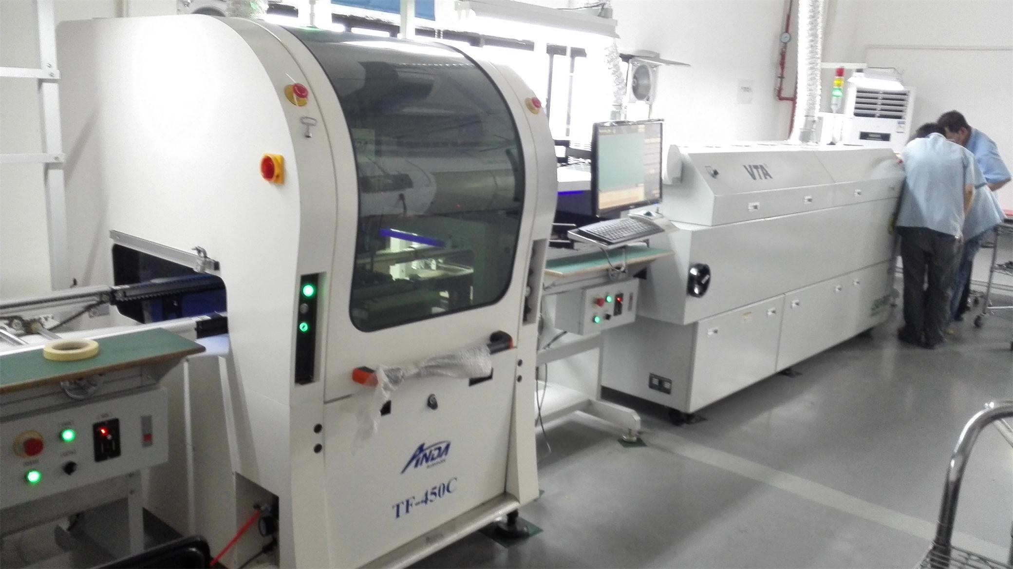目前已配置2条SMT生产线、3条DIP插装生产线、2条测试组装生产线,另配置全自动选择性三防涂覆生产线。后序将进一步完善生产线。